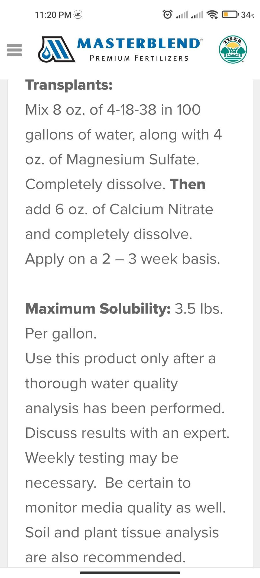Mix MASTERBLEND and Epsom Salt together if desired, but always mix Calcium Nitrate separately.