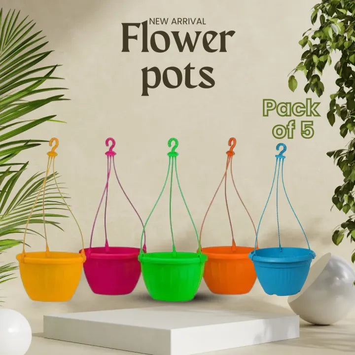 Pack of 5 Multicolor Hanging Flower Pots β Stylish, Durable & Functional with Drainage