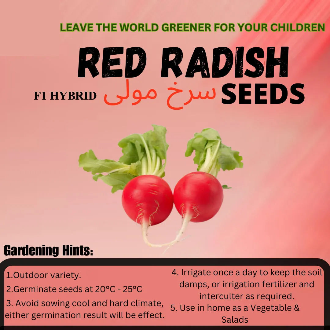 Bring fresh, homegrown flavor to your table—plant your garden with our Top Quality Hybrid Red Radish Seeds and enjoy the perfect blend of nutrition, taste, and convenience.